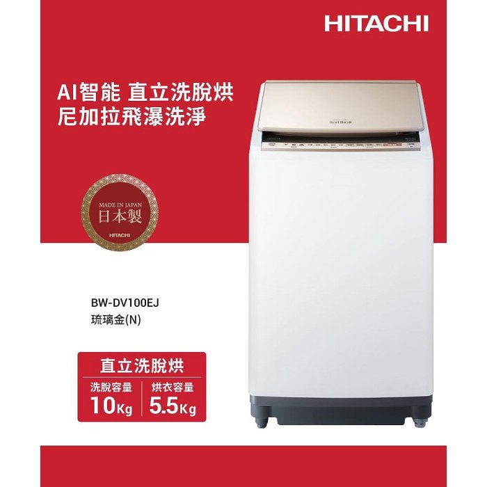 優寶購物《ubao.Tw》特貨品商城,黑貓宅配,取貨付款,[ 雙1212家電折扣破盤價 ] HITACHI日立10KG直立式洗脫烘洗衣機 BWDV100EJ 線上刷卡免手續 全省配送安裝 | Yahoo拍賣