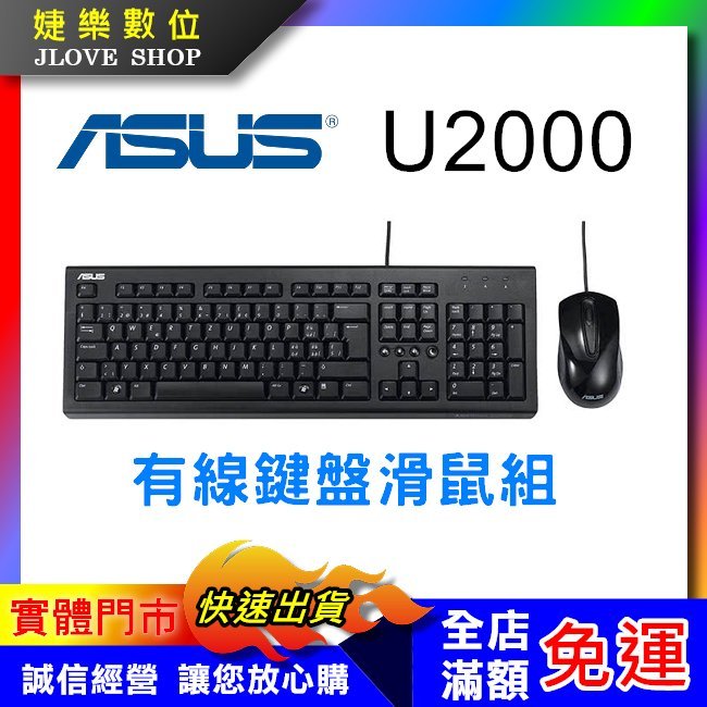 優寶購物《ubao.Tw》特貨品商城,黑貓宅配,取貨付款,【實體門市:婕樂數位】台灣現貨 原廠保固 ASUS華碩 U2000 USB鍵盤滑鼠組 有線鍵盤 有線滑鼠 有線鍵盤滑鼠組 | Yahoo拍賣