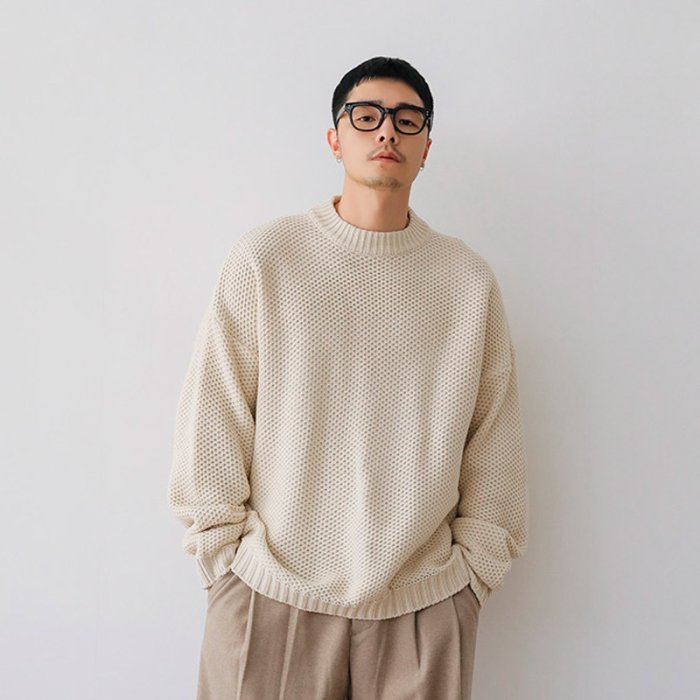 優寶購物《ubao.Tw》特貨品商城,黑貓宅配,取貨付款,正韓男裝 圓領華夫格紋寬鬆針織衫 / 4色 / BS11269 KOREALINE 搖滾星球 | Yahoo拍賣