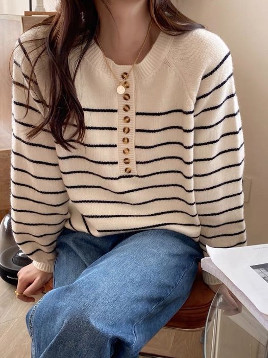 優寶購物《ubao.Tw》特貨品商城,黑貓宅配,取貨付款,【2A Two】2色🌜排扣條紋長袖針織毛衣『BD0009』 | Yahoo拍賣