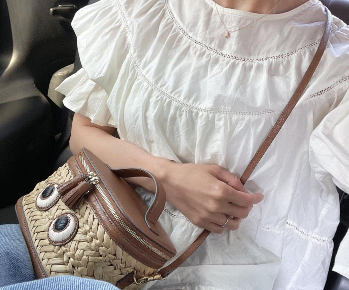 優寶購物《ubao.Tw》特貨品商城,黑貓宅配,取貨付款,【折扣預購】23春夏正品ANYA HINDMARCH Eyes大眼睛 焦糖色皮革 米色草編包 肩背包 提箱包 | Yahoo拍賣