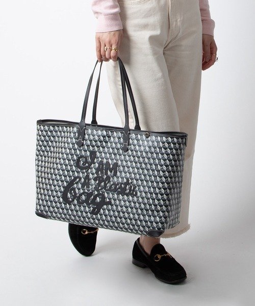 優寶購物《ubao.Tw》特貨品商城,黑貓宅配,取貨付款,【折扣預購】23春夏正品Anya Hindmarch I Am A Plastic Bag 黑灰色大款幾何圖型托特包 | Yahoo拍賣