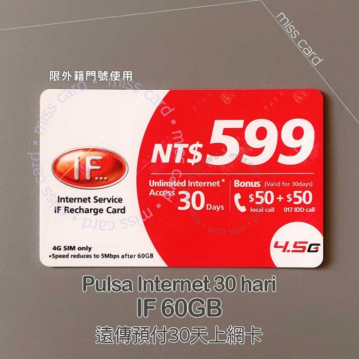 優寶購物《ubao.Tw》特貨品商城,黑貓宅配,取貨付款,【遠傳外籍30天60GB 上網吃到飽】預付卡專用30天上網補充卡/儲值卡.Internet ifu.if599⚡MissCall儲值卡專賣 | Yahoo拍賣