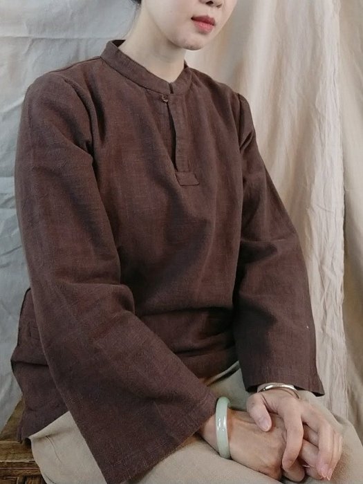 優寶購物《ubao.Tw》特貨品商城,黑貓宅配,取貨付款,☆雲南卓瑪☆ A09193A重磅厚麻簡約立領上衣~赭石色 對生花M,L, C1-8-2 | Yahoo拍賣
