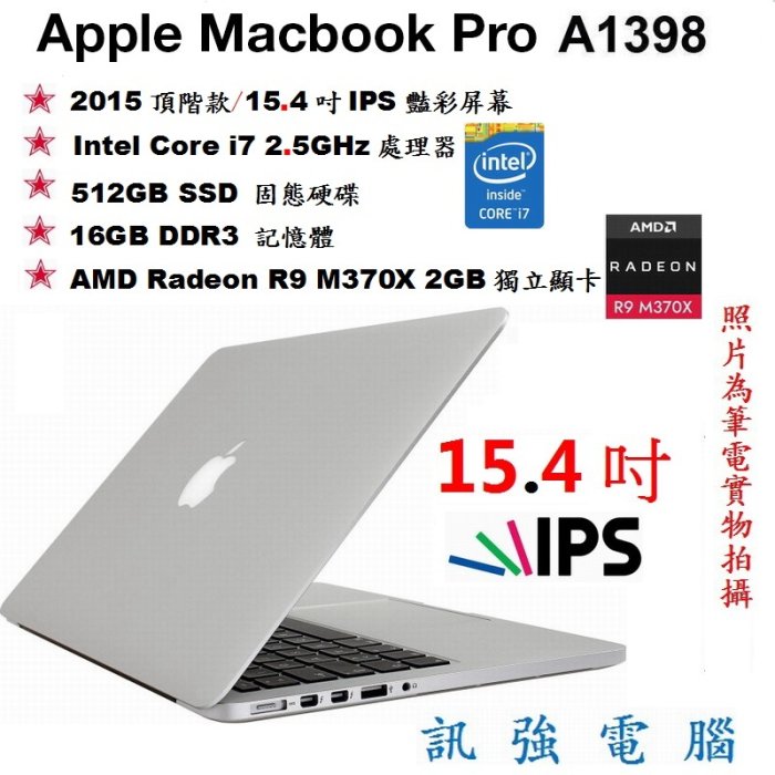 優寶購物《ubao.Tw》特貨品商城,黑貓宅配,取貨付款,MacBook Pro A1398頂階款、15吋、i7-2.5G、512G SSD固態硬碟、16G記憶體、R9 2G獨顯 | Yahoo拍賣
