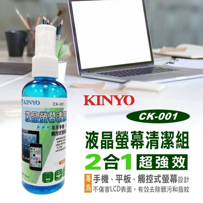 優寶購物《ubao.Tw》特貨品商城,黑貓宅配,取貨付款,【現貨附發票】KINYO 耐嘉 液晶螢幕清潔組 2合1 清潔劑 + 清潔布 1組入 CK-001 | Yahoo拍賣