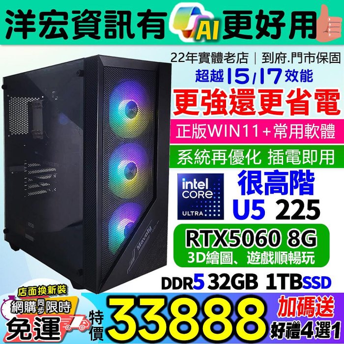 優寶購物《ubao.Tw》特貨品商城,黑貓宅配,取貨付款,【33888元】全新INTEL U5-225 4.9高速超越原I5主機+RTX5060獨顯32G/1TB/650W/WIN11遊戲3D繪圖順還更省電有AI | Yahoo拍賣