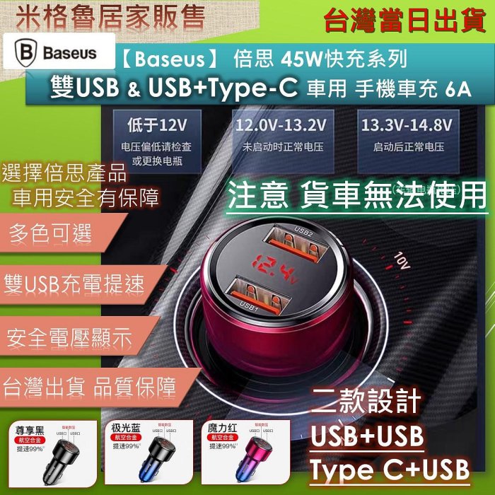 優寶購物《ubao.Tw》特貨品商城,黑貓宅配,取貨付款,Baseus 倍思 車充 6A 快充 車載充電器 雙USB& typeC 汽車點菸器 LED電壓顯示_台灣現貨當天出 | Yahoo拍賣
