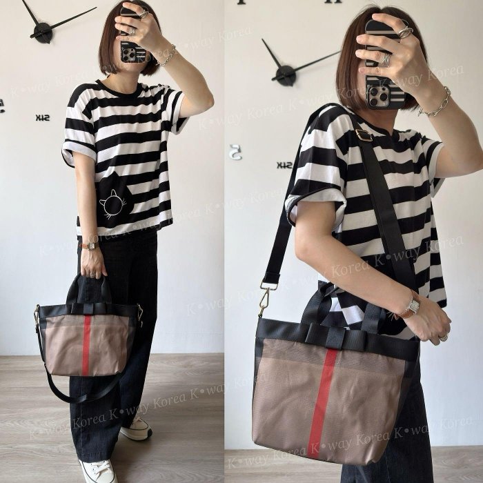優寶購物《ubao.Tw》特貨品商城,黑貓宅配,取貨付款,【正韓】韓國卡其格防水布配真皮蝴蝶結小購物袋 大容量防潑水斜背包 | Yahoo拍賣