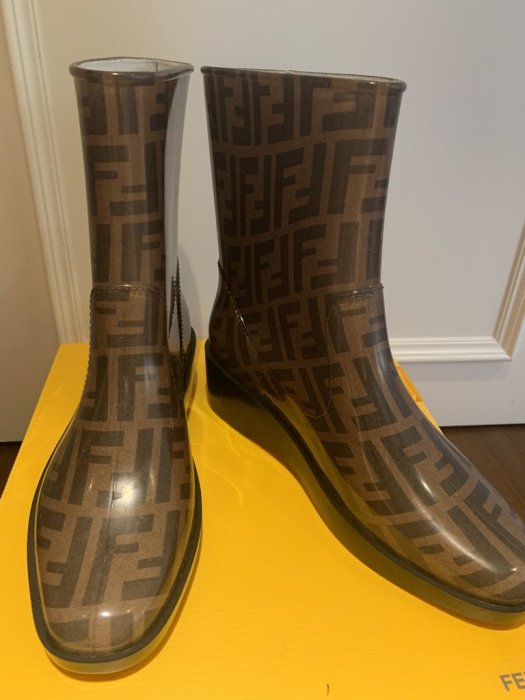 優寶購物《ubao.Tw》特貨品商城,黑貓宅配,取貨付款,Fendi 經典 LOGO 圖紋短雨靴 | Yahoo拍賣