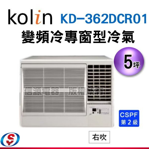 優寶購物《ubao.Tw》特貨品商城,黑貓宅配,取貨付款,可議價【信源電器】5坪 【KOLIN 歌林】變頻冷專右吹窗型冷氣KD-362DCR01 | Yahoo拍賣