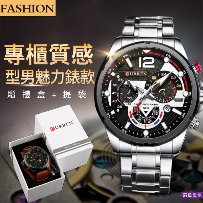 優寶購物《ubao.Tw》特貨品商城,黑貓宅配,取貨付款,【紫色星球】專櫃質感 贈錶盒+提袋 手錶 男錶 鋼帶手錶 石英錶 有日歷【P8395】磨砂錶盤 禮物 真三眼計時錶 五色 | Yahoo拍賣