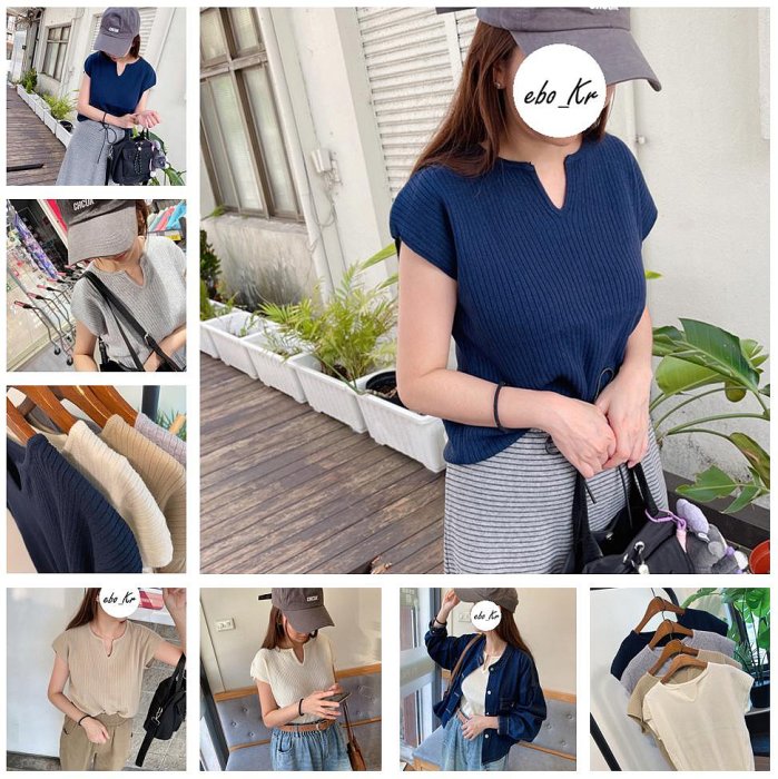 優寶購物《ubao.Tw》特貨品商城,黑貓宅配,取貨付款,*EBO_KR*韓 包色推薦~滾邊領小開V坑條針織T | Yahoo拍賣