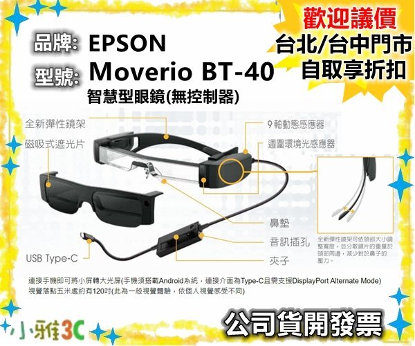 優寶購物《ubao.Tw》特貨品商城,黑貓宅配,取貨付款,現貨【公司貨開發票】 愛普生 EPSON Moverio BT-40 智慧型眼鏡(無控制器) BT40 【小雅3C】台北 | Yahoo拍賣