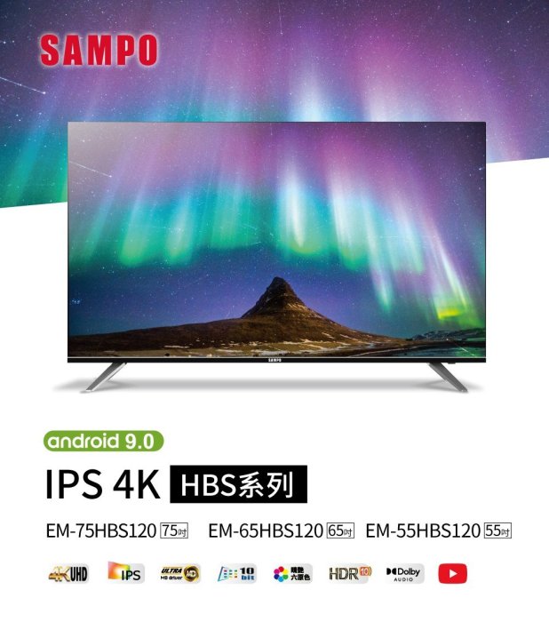 優寶購物《ubao.Tw》特貨品商城,黑貓宅配,取貨付款,免運費【SAMPO 聲寶】65吋/型 新轟天雷 4K UHD 聯網 電視/液晶顯示器 EM-65HBS120 | Yahoo拍賣