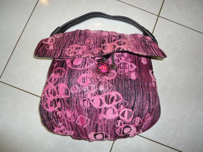 優寶購物《ubao.Tw》特貨品商城,黑貓宅配,取貨付款,Folli Follie 黑底粉紅色花布束口肩背/手提包,底寬度:34*7.10cm,高度:30cm,少用降價大出清 | Yahoo拍賣