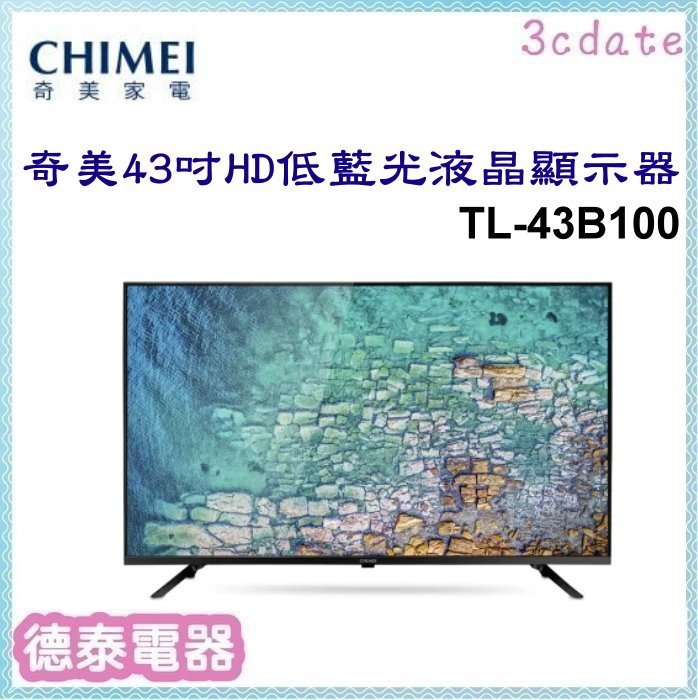 優寶購物《ubao.Tw》特貨品商城,黑貓宅配,取貨付款,CHIMEI【TL-43B100】奇美43吋HD低藍光液晶顯示器(不含視訊盒)【德泰電器】 | Yahoo拍賣