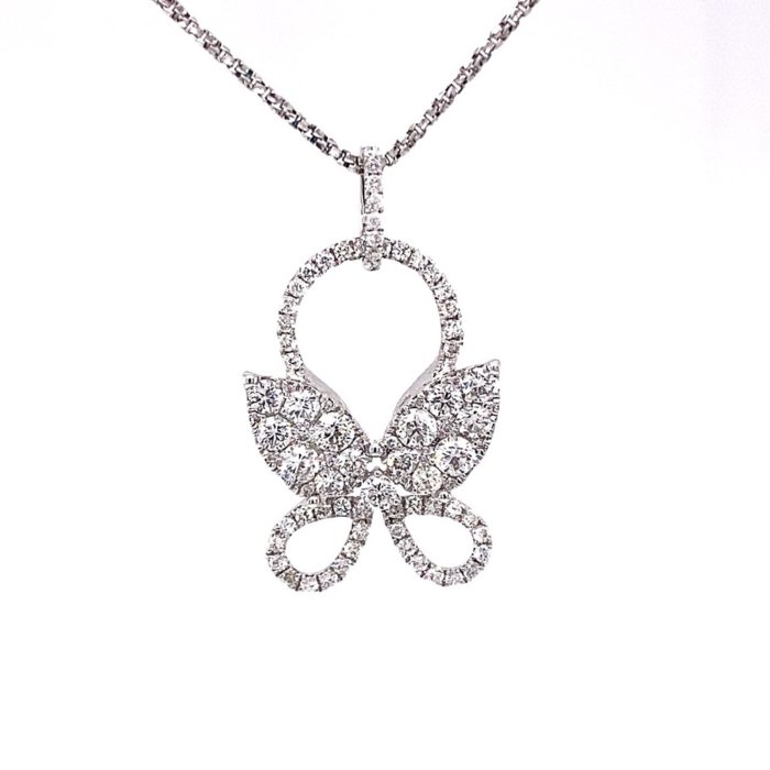 優寶購物《ubao.Tw》特貨品商城,黑貓宅配,取貨付款,白18K金天然鑽石蝴蝶造型墜子(含鍊) [基隆克拉多色石Y拍] | Yahoo拍賣
