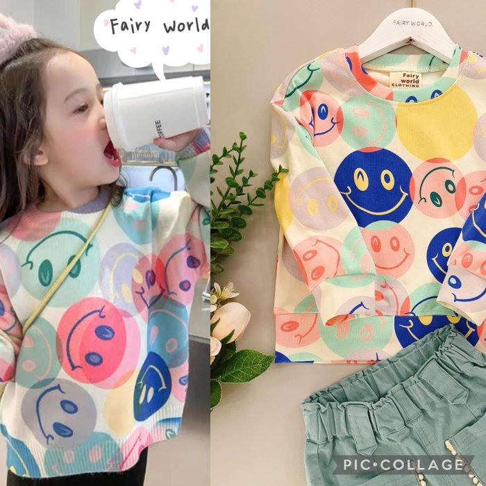優寶購物《ubao.Tw》特貨品商城,黑貓宅配,取貨付款,台灣現貨【223568】Fairy World 秋冬31423 滿版微笑長袖 5~17 | Yahoo拍賣