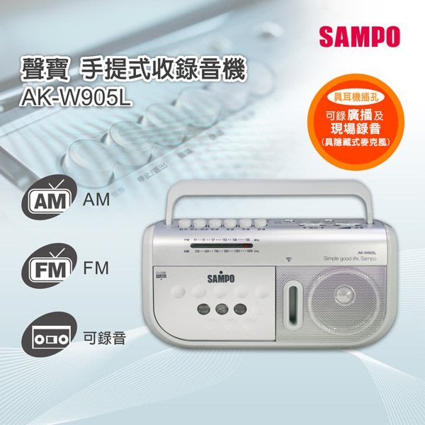 優寶購物《ubao.Tw》特貨品商城,黑貓宅配,取貨付款,「全新現貨保固」超大音量。SAMPO聲寶 手提式收錄音機 AK-W905L(絕版最後2個) | Yahoo拍賣