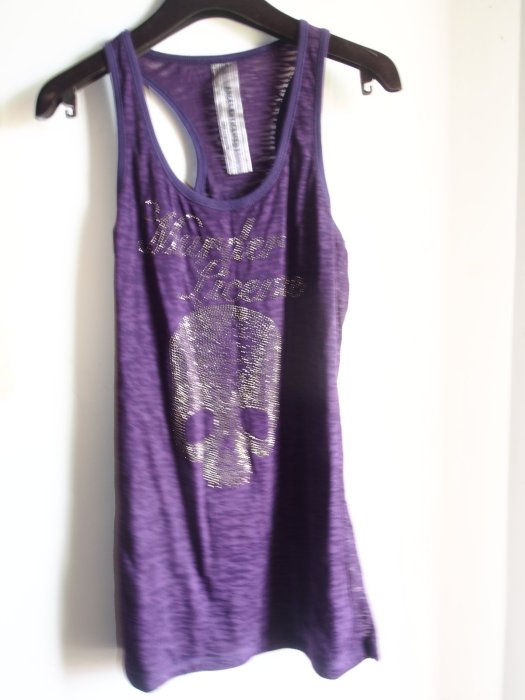 優寶購物《ubao.Tw》特貨品商城,黑貓宅配,取貨付款,近 新 水鑽骷顱頭 彈性好紫色挖背背心 | Yahoo拍賣