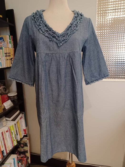 優寶購物《ubao.Tw》特貨品商城,黑貓宅配,取貨付款,earth music & ecology ♥日本品牌♥ 丹寧素面 拼接滾邊V領 七分袖洋裝 | Yahoo拍賣