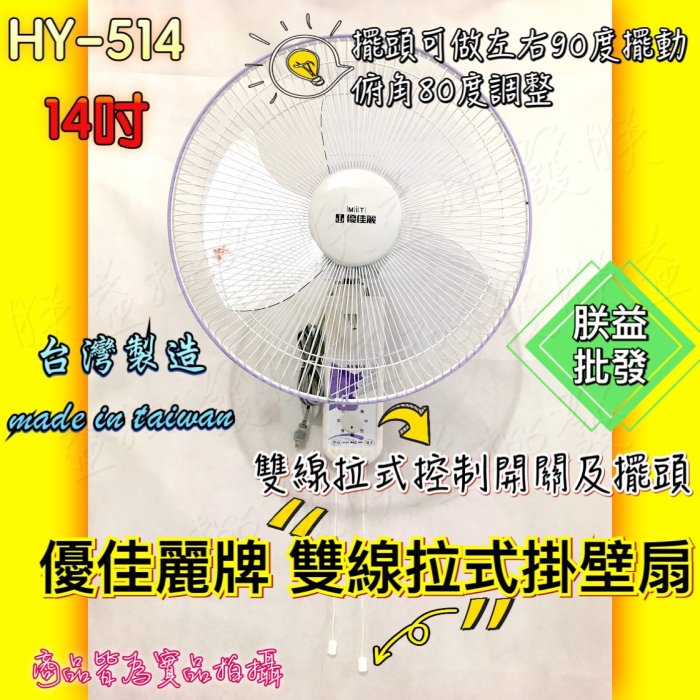 優寶購物《ubao.Tw》特貨品商城,黑貓宅配,取貨付款,┌批發零售┐優佳麗 14吋 掛壁扇 HY-514AB 雙拉壁扇 吊壁扇 太空扇 電風扇 電扇 通風扇 銅線馬達 台灣製造 | Yahoo拍賣