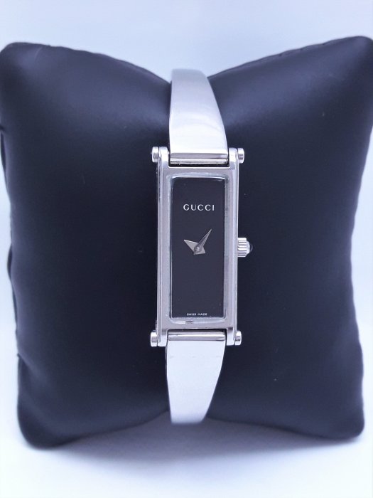 優寶購物《ubao.Tw》特貨品商城,黑貓宅配,取貨付款,【Jessica潔西卡小舖】古馳GUCCI(1500L)細長方形黑面經典白鋼手環石英女錶 | Yahoo拍賣