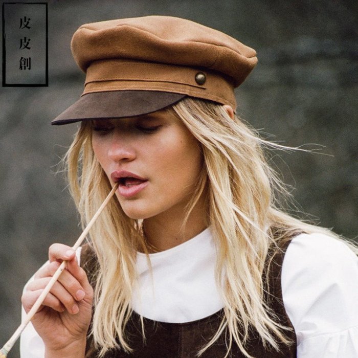 優寶購物《ubao.Tw》特貨品商城,黑貓宅配,取貨付款,『皮皮創』原創設計真皮海軍帽。復古麂皮鴨舌帽 英倫風真皮報童帽男女 | Yahoo拍賣