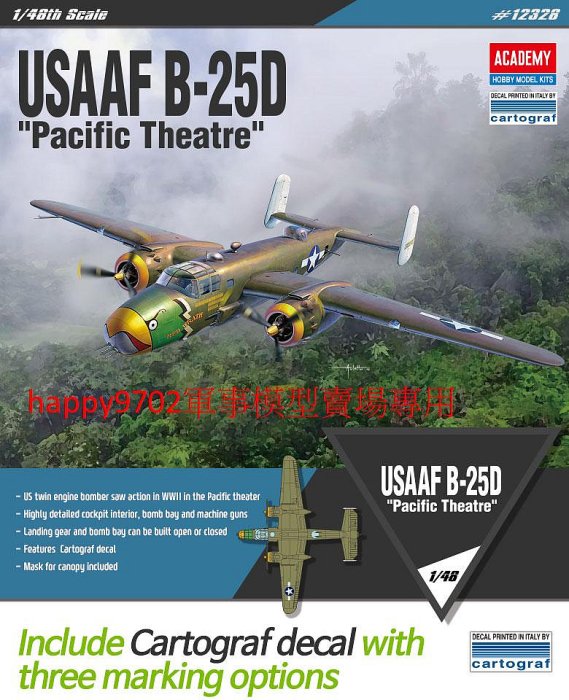 優寶購物《ubao.Tw》特貨品商城,黑貓宅配,取貨付款,現貨 1/48 ACADEMY 美國空軍 B-25D米切爾型轟炸機 12328 | Yahoo拍賣