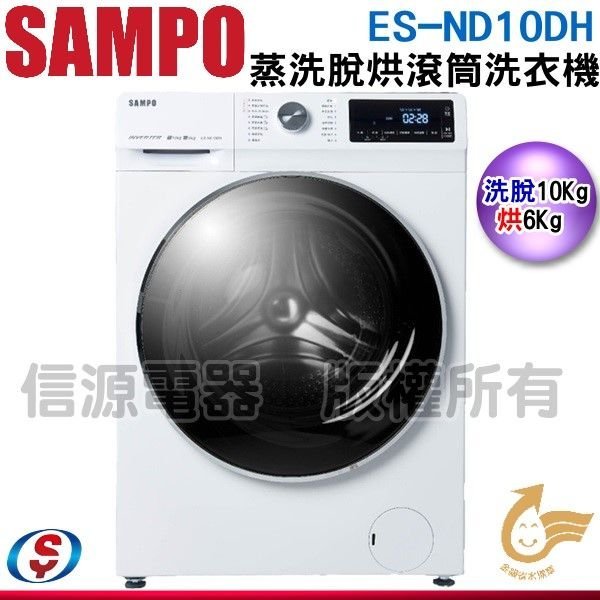 優寶購物《ubao.Tw》特貨品商城,黑貓宅配,取貨付款,新品【信源電器】10公斤/6公斤【SAMPO聲寶】蒸洗脫烘滾筒洗衣機 ES-ND10DH / ESND10DH | Yahoo拍賣