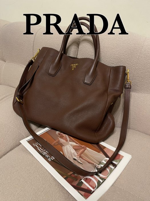 優寶購物《ubao.Tw》特貨品商城,黑貓宅配,取貨付款,Prada咖啡色全牛皮側背包 斜背包 LYH23 原價近五萬 | Yahoo拍賣