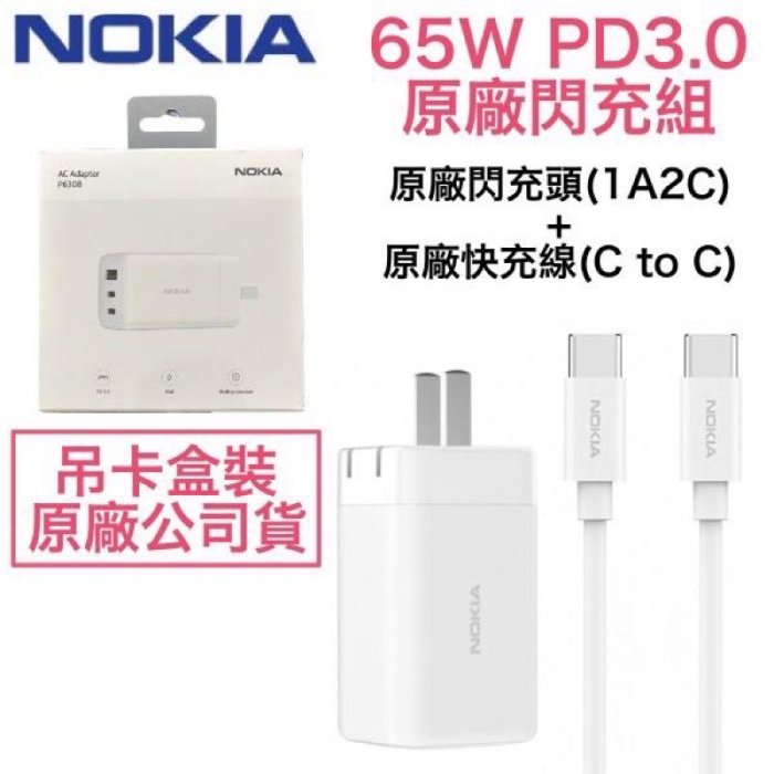 優寶購物《ubao.Tw》特貨品商城,黑貓宅配,取貨付款,NOKIA 65W PD3.0 充電器套裝組 2C1A GaN 氮化鎵充電器+快充線,兼容筆電、平板、手機 1A2C | Yahoo拍賣
