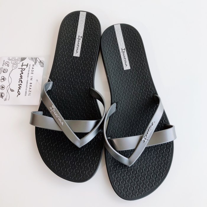優寶購物《ubao.Tw》特貨品商城,黑貓宅配,取貨付款,*Ipanema 2023*巴西拖鞋(純色簡約 雙帶造型 KIREI 夾腳平底拖鞋) 黑/銀 8180524145 | Yahoo拍賣