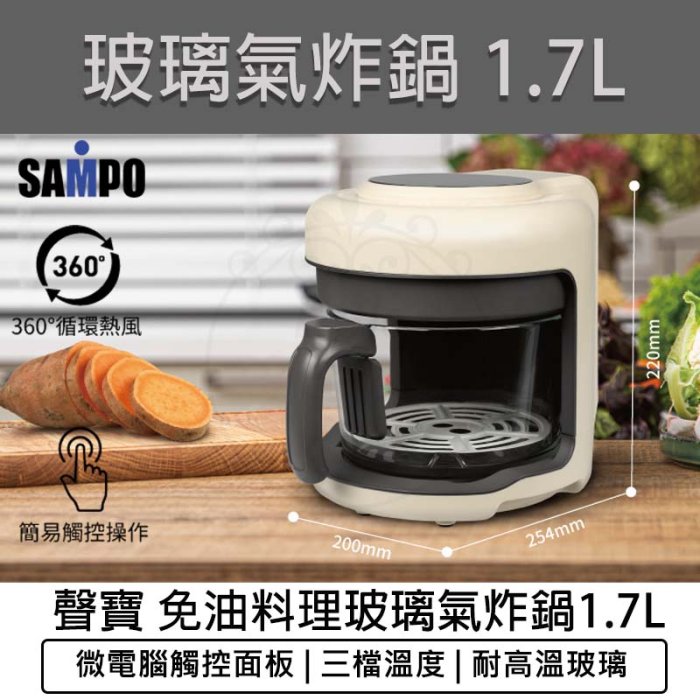優寶購物《ubao.Tw》特貨品商城,黑貓宅配,取貨付款,【公司貨 附發票】SAMPO 聲寶 1.7L 免油料理玻璃氣炸鍋 KZ-B22181BL 空氣炸鍋 氣炸烤箱 | Yahoo拍賣