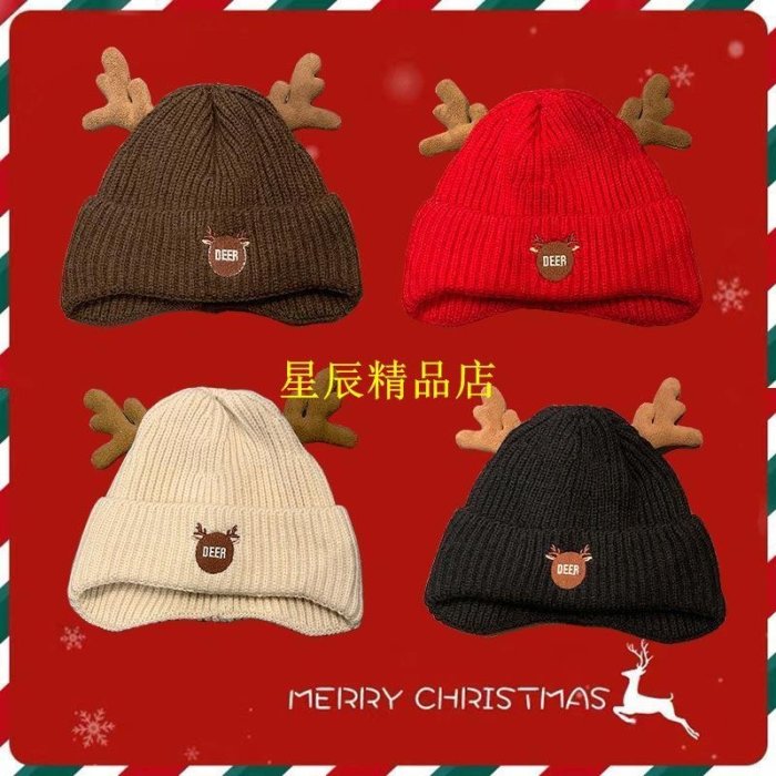 優寶購物《ubao.Tw》特貨品商城,黑貓宅配,取貨付款,下殺 圣誕節禮物可愛鹿角針織毛線帽子女冬天加絨加厚保暖護耳帽潮百搭 | Yahoo拍賣
