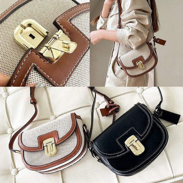 優寶購物《ubao.Tw》特貨品商城,黑貓宅配,取貨付款,正韓空運 Sweetglam no.16101 配色包邊馬鞍包/側背包/斜肩包 23MAR | Yahoo拍賣