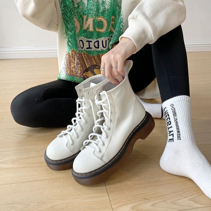 優寶購物《ubao.Tw》特貨品商城,黑貓宅配,取貨付款,【熱賣精選】厚底馬丁靴女2021秋冬新款英倫風系帶洋氣百搭顯瘦圓頭松糕底短靴19681 | Yahoo拍賣