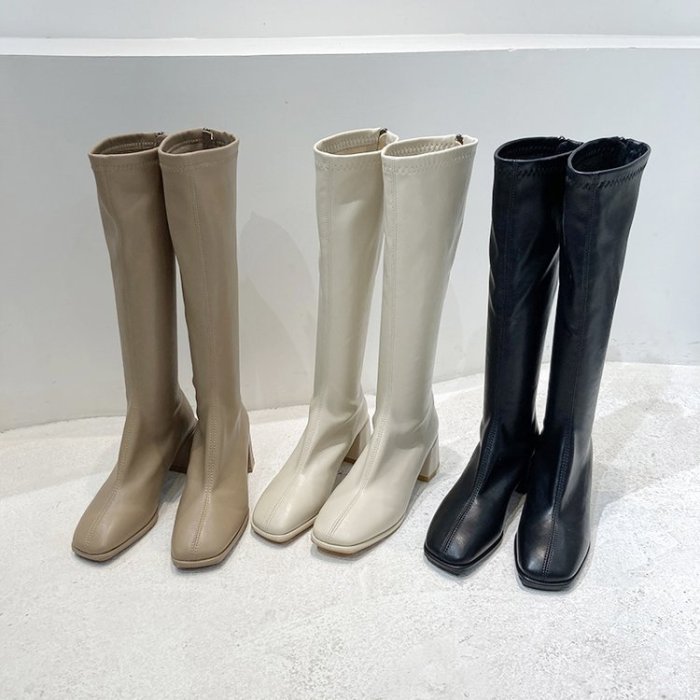 優寶購物《ubao.Tw》特貨品商城,黑貓宅配,取貨付款,【熱賣精選】不過膝長靴女2021新款瘦瘦靴網紅高跟中跟長筒靴英倫風騎士靴小個子白色靴子35-3919927 | Yahoo拍賣