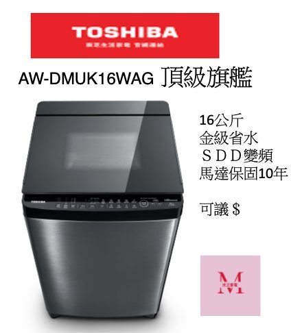 優寶購物《ubao.Tw》特貨品商城,黑貓宅配,取貨付款,TOSHIBA AW-DMUK16WAG 頂級旗艦16KG 超微奈米泡泡 x 晶鑽鍍膜即通享優惠*米之家電* | Yahoo拍賣