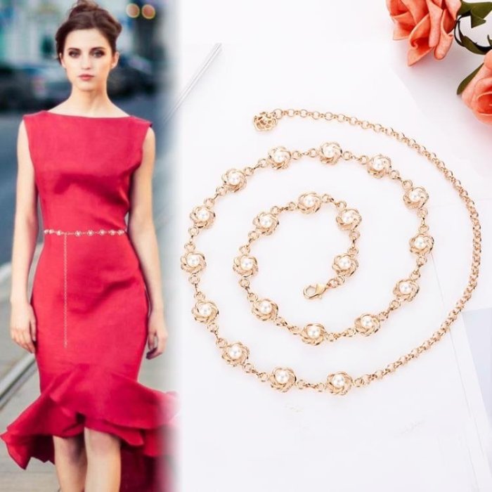 優寶購物《ubao.Tw》特貨品商城,黑貓宅配,取貨付款,下殺 珍珠腰鍊女士時尚百搭腰帶裝飾連衣裙甜美太陽花金屬鍊條韓版裙帶 | Yahoo拍賣