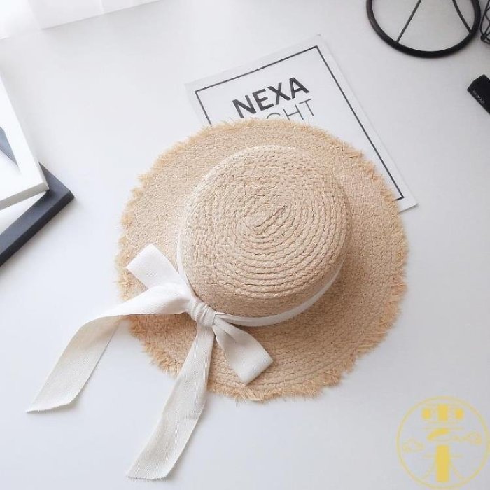 優寶購物《ubao.Tw》特貨品商城,黑貓宅配,取貨付款,下殺 日系百搭毛邊拉菲草帽女夏天平頂帽子小禮帽蝴蝶結飄帶沙灘遮陽帽 | Yahoo拍賣