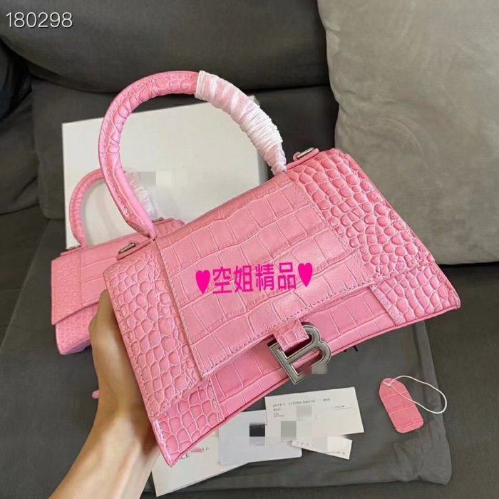 優寶購物《ubao.Tw》特貨品商城,黑貓宅配,取貨付款,【熱賣精選】 國慶特價 B家同款 銀扣BB字母 鱷魚紋壓花牛皮側背包 肩背包 沙漏包 粉色明星同款 | Yahoo拍賣