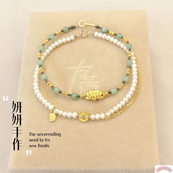 優寶購物《ubao.Tw》特貨品商城,黑貓宅配,取貨付款,【熱賣精選】翡翠綠松珍珠錢幣荷花如意扣手串手繩氣質百搭手鍊 | Yahoo拍賣