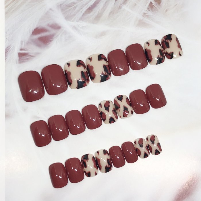 優寶購物《ubao.Tw》特貨品商城,黑貓宅配,取貨付款,下殺 豹紋指甲貼片ins美甲成品新款棕色顯白短款方圓頭 穿新戴式防水歐美風#美甲用品#指甲貼#指甲油#背膠甲貼#雙面指甲 | Yahoo拍賣