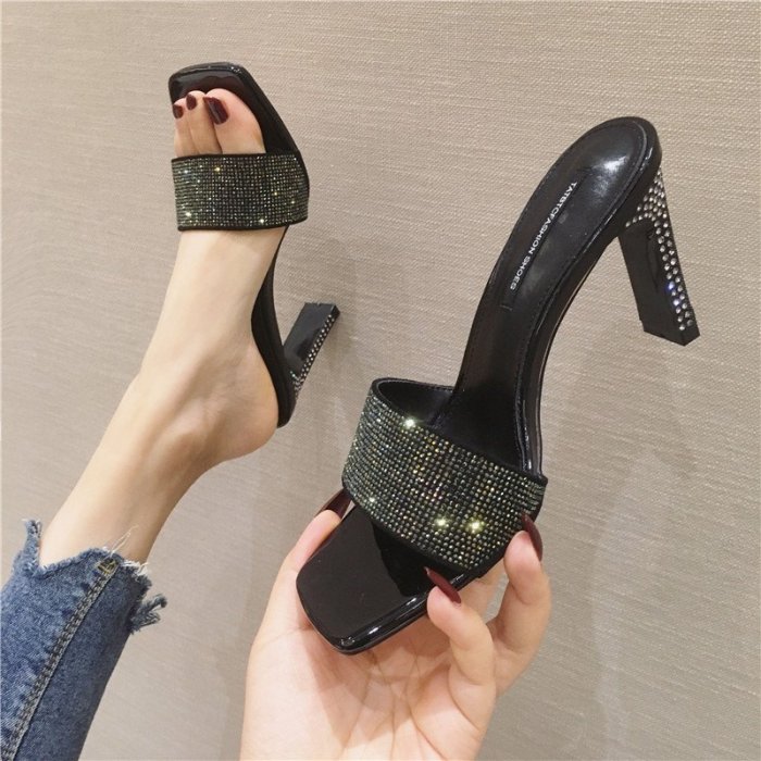 優寶購物《ubao.Tw》特貨品商城,黑貓宅配,取貨付款,【促銷】2020新款夏露趾外穿高跟鞋女新水鑽性感一字拖性感新亮片時尚女涼拖 | Yahoo拍賣