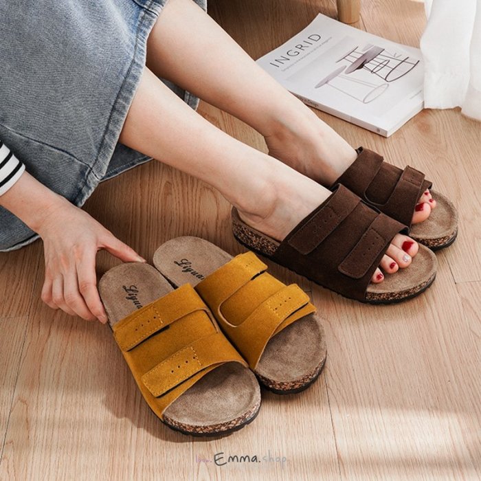 優寶購物《ubao.Tw》特貨品商城,黑貓宅配,取貨付款,EmmaShop艾購物-日韓國同步上新-復古寬版雙排平底拖鞋/情侶款/勃肯風 涼拖 | Yahoo拍賣