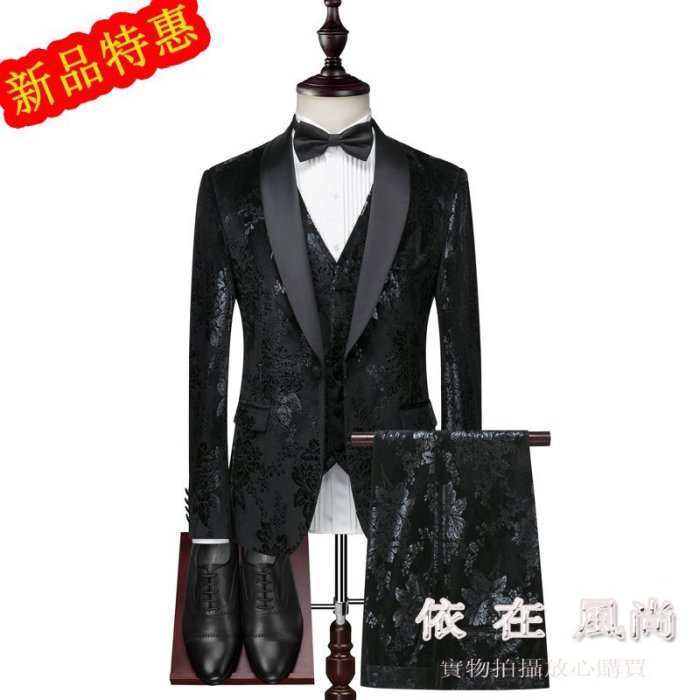 優寶購物《ubao.Tw》特貨品商城,黑貓宅配,取貨付款,熱銷 商務風西裝三件套M-3XL新款男士絲絨晚宴服禮服西服套裝時尚印花工藝青果領西裝西服馬甲西褲套裝IJYS.19 可開 | Yahoo拍賣