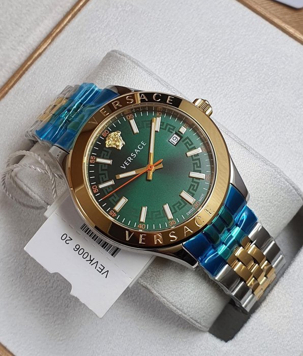 優寶購物《ubao.Tw》特貨品商城,黑貓宅配,取貨付款,VERSACE Hellenyium 金色框 綠色面錶盤 金色配銀色鋼錶帶 石英 男士手錶 VEVK00620 | Yahoo拍賣