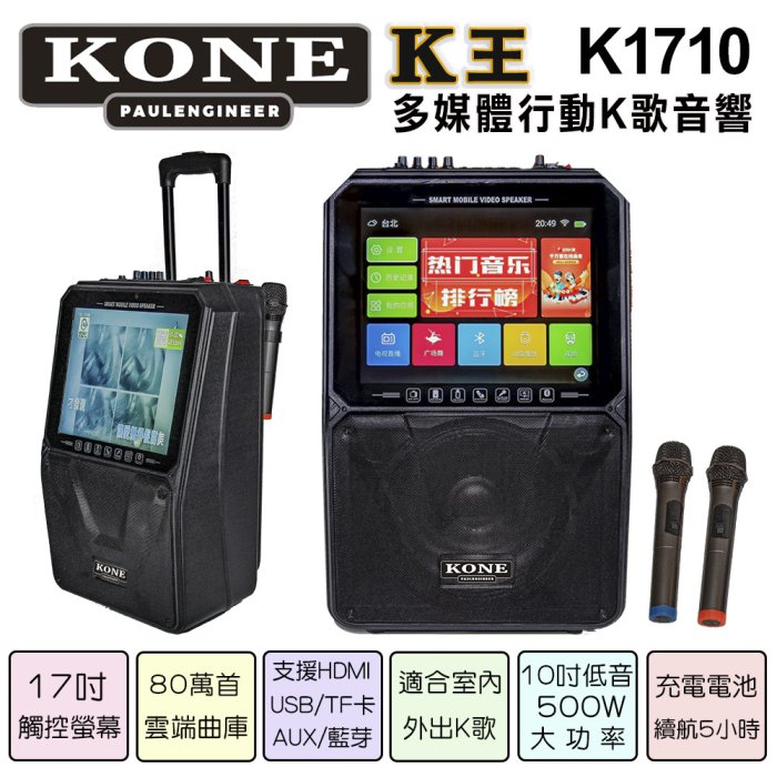 優寶購物《ubao.Tw》特貨品商城,黑貓宅配,取貨付款,KONE K王 K1710多媒體行動K歌音響/大螢幕17吋觸控點歌強悍10吋中低喇叭音效拉桿式KTV音響多功能K歌一體機 | Yahoo拍賣